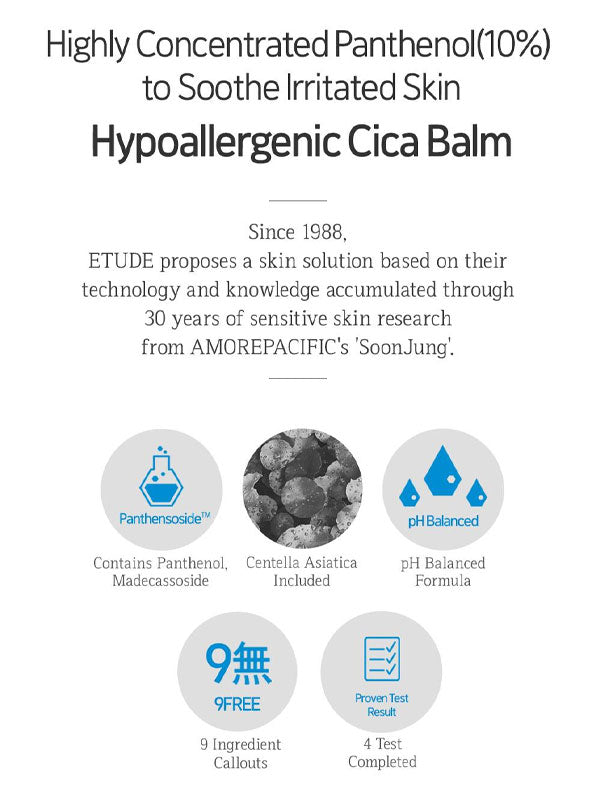 The Etude House Soonjung 10-Panthensoside Cica Balm is a meticulously formulated product designed to cater to the needs of sensitive skin, offering a gentle touch of care and rejuvenation. Crafted with a blend of highly effective ingredients, this balm stands out as a beacon of relief for stressed and sensitive skin types.